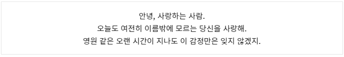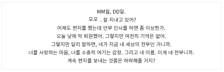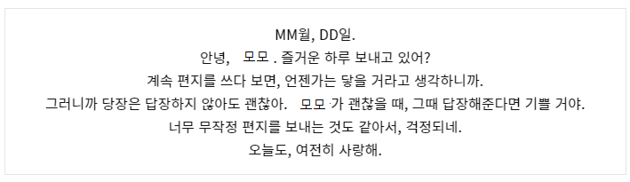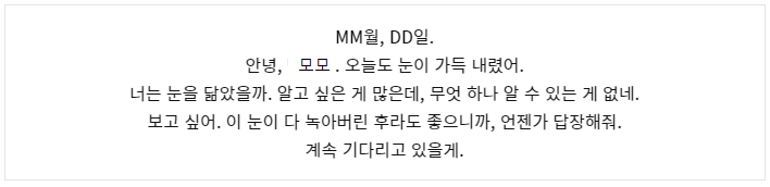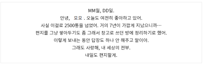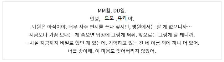 …그래도, 앞으로도 받지 못할 거라는 걸 알면서도 편지를 쓸 수밖에 없었어.