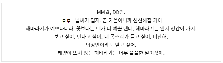 답장이, 오지 않는 게 아니라, 올 수 없었던 거였다는 사실을 너무 뒤늦게 알아버렸어.