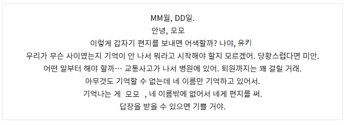 기억이 돌아온 직후의 유키가, 모모에게 썼던 편지였을 겁니다.